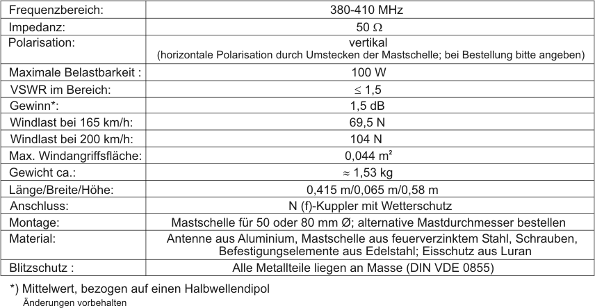 SVA 2log TETRA (380-410 MHz), Vormast-Antenne für TETRA